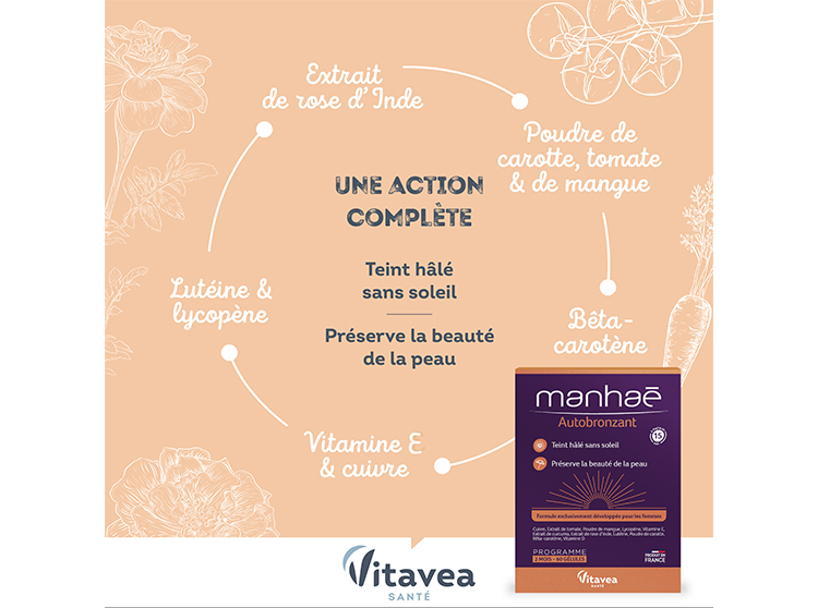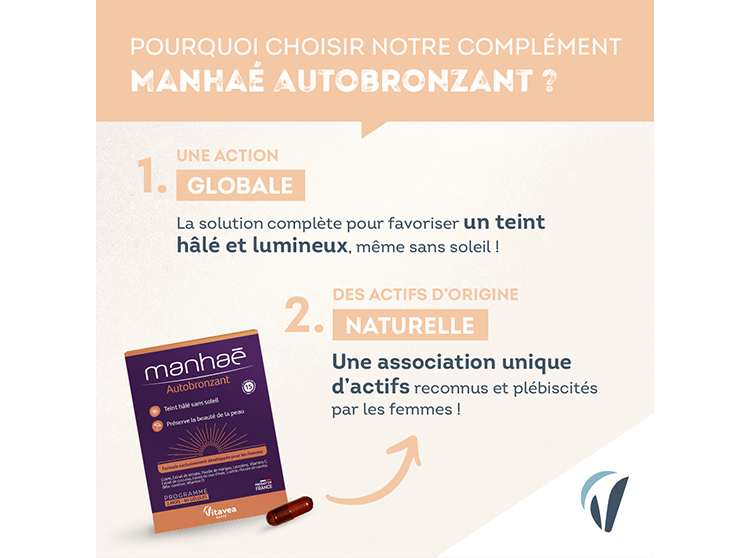 Manhaé Autobronzant est la solution complète pour favoriser une pigmentation naturelle de la peau, une peau nourrie et un teint hâlé et lumineux, même sans soleil. Manhaé Autobronzant permet d'activer le bronzage en offrant un hâle naturel et homogène.