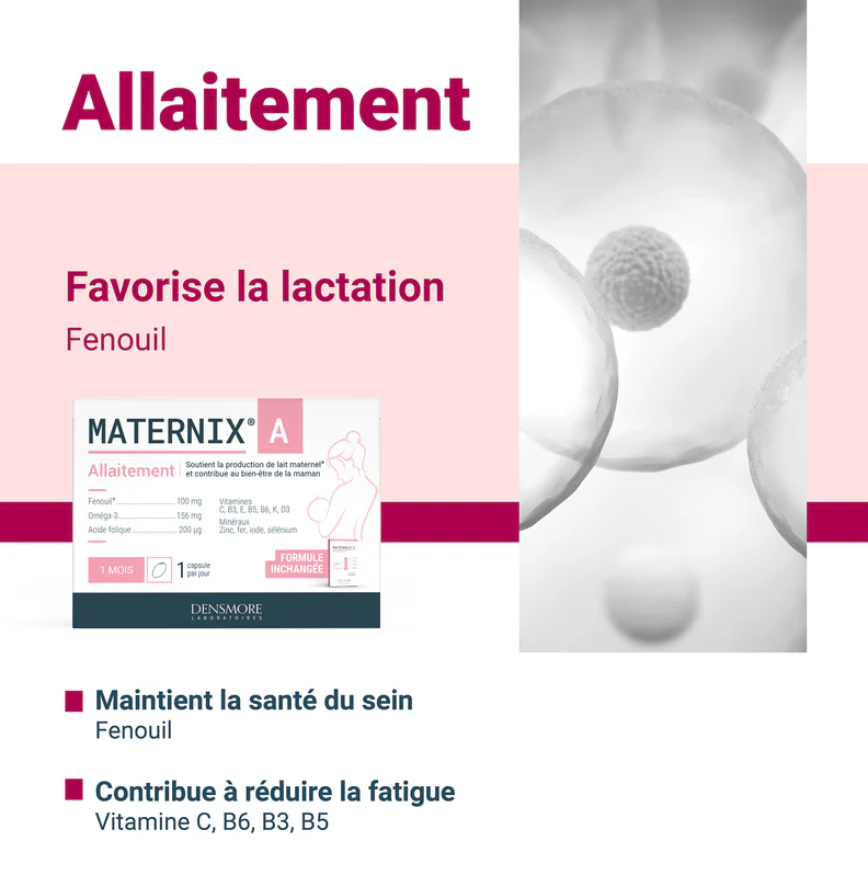 Maternix A Allaitement est un complément alimentaire précieux pour accompagner les femmes pendant l'allaitement et leur permettre de vivre cette période unique en pleine forme. Il est recommandé de demander conseil à un pharmacien ou à un professionnel de santé avant de débuter une supplémentation, en particulier en cas de grossesse ou d'allaitement.