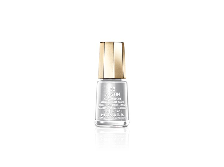 Le vernis à ongles Mini color nacré n°28 Austin de Mavala est un bel argenté métallisé.