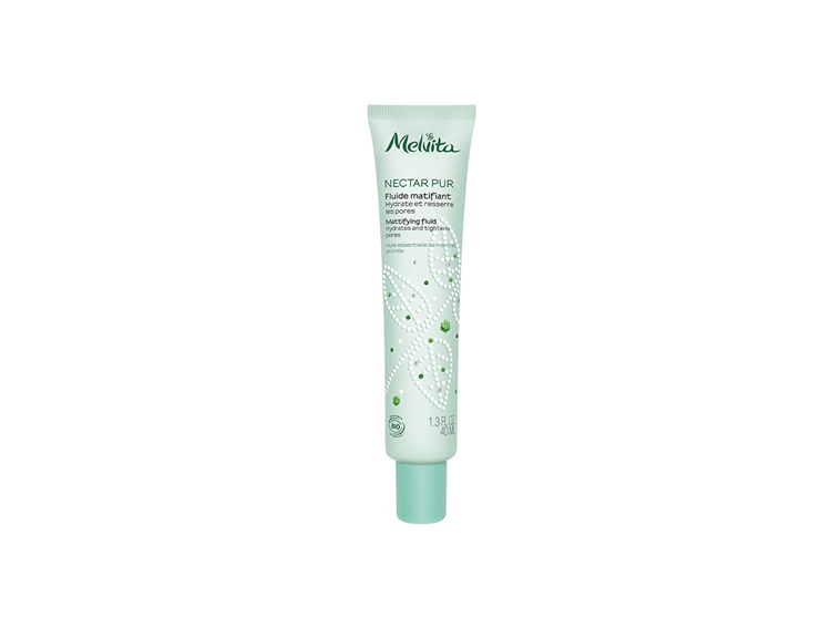 Melvita Nectar pur fluide matifiant bio est un soin de jour qui hydrate et matifie les peaux mixtes à grasses.