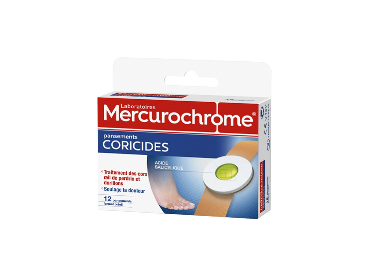 Les pansements coricides Mercurochrome protègent contre la pression douloureuse due aux cors grâce à la leur composition à base d'acide salicylique. Ils promeuvent l’élimination sûre et efficace des cors.