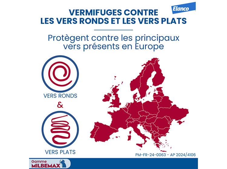L’association de ces deux actifs permet à MilbemaxTab d’assurer une protection globale contre les principaux parasites intestinaux chez le chiot et le petit chien.