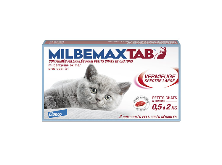 Milbemax Tab Petits chats et chatons de 0,5 à 2kg permet de lutter contre l’infestation des vers plats et ronds pour les petis chats et chatons entre 0,5 et 2kg, même pour les femelles en période de lactation et de gestation, ainsi que dans les élevages de chats.