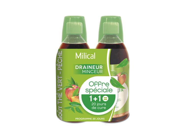Découvrez le délicieux goût Thé Pêche, frais et gourmand, du Draineur Ultra Thé Pêche Milical.