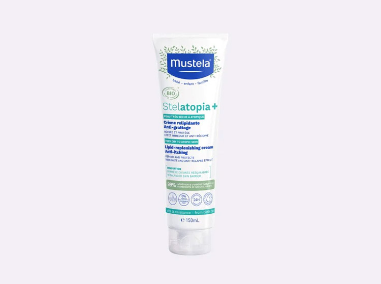 Peau très sèche, tendance à l’eczéma atopique ? La crème relipidante anti-grattage Stelatopia + apaise efficacement la peau. Pour toute la famille, dès la naissance. Certifiée BIO, sa formule vegan sans parfum contient 99% d’ingrédients d’origine naturelle. Grâce à son complexe d’actifs brevetés, l’Oléodistillat de Tournesol bio et le prébiotique, Bioécolia, elle diminue instantanément les rougeurs, et a un effet anti-récidive en limitant les pics de sécheresse. Elle contient également un trio d'ingrédients BIO riches en lipides:
