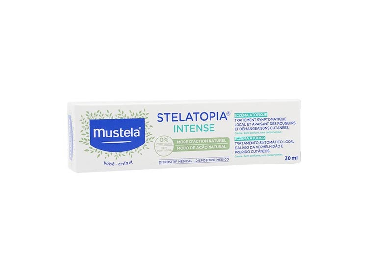 La crème Stelatopia Intense Bébé, est un traitement local permettant de diminuer les sensations de démangeaisons et l'eczéma et autres sympytômes ainsi que les rougeurs.