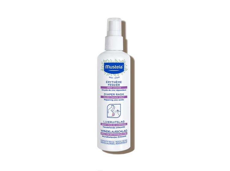 Le Spray Change à l'Oxyde de Zinc est la solution Mustela en cas d'érythème fessier léger à modéré, dès la naissance. Son spray ultra-pratique délivre une brume fine et légère de crème qui laisse respirer la peau, ce qui veut dire que la peau sensible et irritée n'a pas besoin d'être touchée.