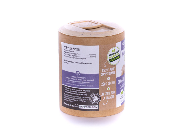 Complément alimentaire écoresponsable, complément alimentaire BIO, complément alimentaire vegan, complément alimentaire digestion, complément alimentaire mal des transports, Nat & Form complément alimentaire gingembre, complément alimentaire inflammations, complément alimentaire immunité.
