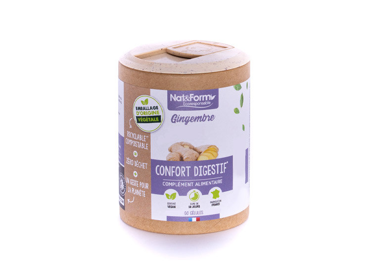 Complément alimentaire écoresponsable, complément alimentaire digestion, complément alimentaire mal des transports, Nat & Form complément alimentaire gingembre, complément alimentaire inflammations, complément alimentaire immunité.