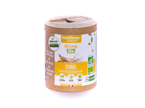 Complément alimentaire écoresponsable, complément alimentaire BIO, complément alimentaire vegan, Nat & Form complément alimentaire ginseng rouge BIO, complément alimentaire immunité, complément alimentaire fatigue, complément alimentaire énergie.