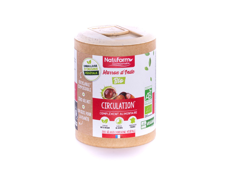 Complément alimentaire écoresponsable, complément alimentaire BIO, complément alimentaire vegan, Nat & Form complément alimentaire marron d'Inde BIO, complément alimentaire jambes lourdes, complément alimentaire confort circulatoire, complément alimentaire hémorroïdes.