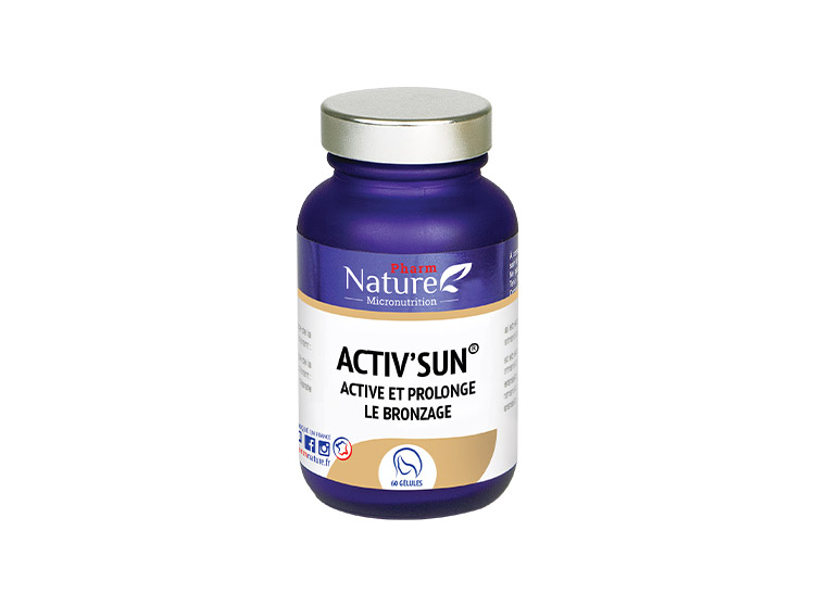 Pharm Nature Micronutrition Activ Sun, est un complément alimentaire pour préparer sa peau au soleil et activer le bronzage à base de tyrosine, astragale, vitamine A et cuivre. La tyrosine est un acide aminé qui va permettre la production de mélanine, pigment naturel de la peau.