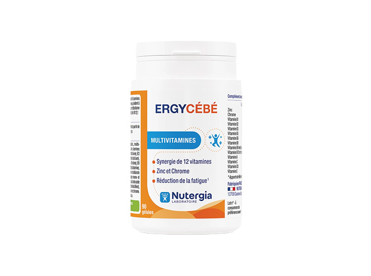 Nutergia Ergycébé est un complexe multivitaminé unique dans une gélule végétale. La formule renferme 12 vitamines, dont toutes les vitamines du groupe B, et 2 minéraux.
