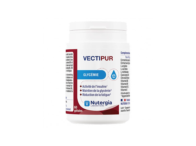 Vectipur contient de la méthionine, du coenzyme Q10 et de la cannelle qui contribue au métabolisme normal du glucose et de l’insuline et aide à diminuer le sucre dans le sang.