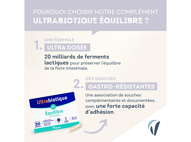 Ultrabiotique Equilibre 10 jours est particulièrement recommandée en cas de déséquilibre des défenses.