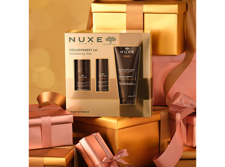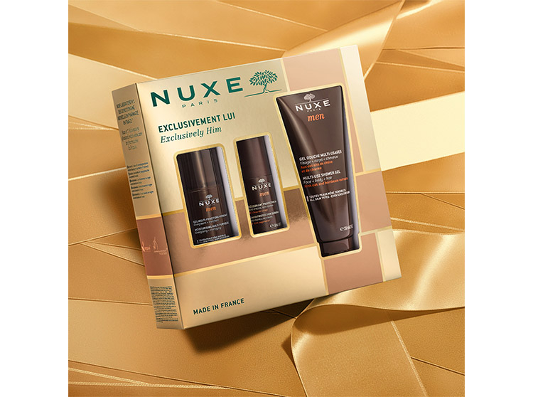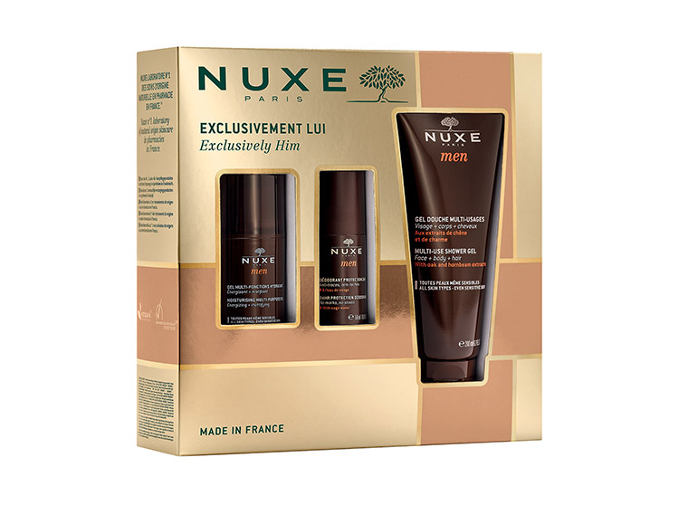 Le coffret Exclusivement Lui conçu par Nuxe contient plusieurs produits phares de la gamme Nuxe Men.