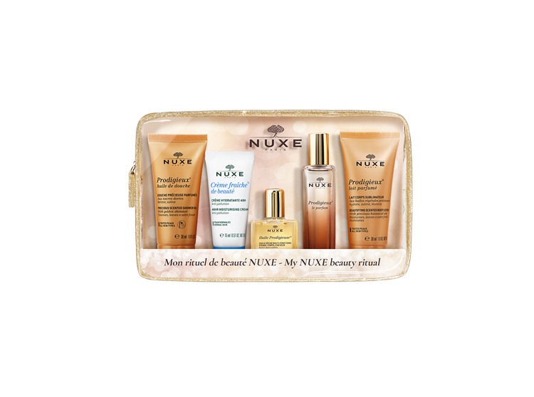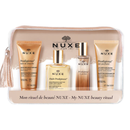 La trousse mon rituel de beauté de Nuxe contient 5 soins essentiels autour de la fragrance mythique de l'Huile Prodigieuse au format voyage.