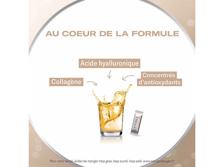 Le collagène donne d’excellents résultats visuels en matière de volume et d’anti-relâchement. Á condition d’être bien assimilé par l’organisme. C’est le cas du collagène hydrolysé dans la formule Oenobiol Elixir Perfect. D’abord absorbé dans le sang – via le système digestif, le collagène est ensuite redistribué dans la peau. Cette protéine essentielle et structurelle, présente dans la peau, préserve la jeunesse de la peau en lui garantissant volume, densité et rebond.