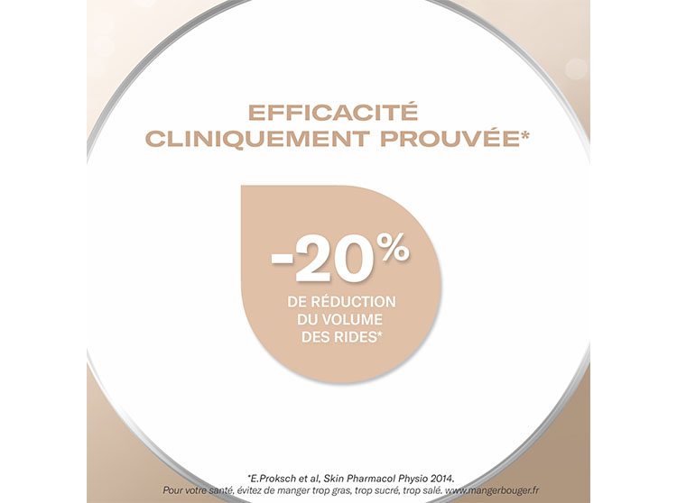 Enrichie en vitamine C, sélénium, biotine et cuivre, sa formule unique agit de l’intérieur(1) pour des rides comblées(2), une peau visiblement repeuplée, lissée et qui parait plus jeune.
