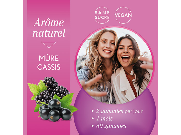 Véritable source de bienfait, ce sont de succulentes gummies vegan, sans sucre, à l'arôme naturel "mûre cassis". Made in France.