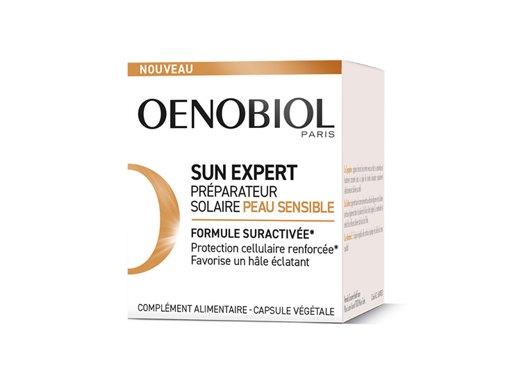 Complément alimentaire solaire, complément alimentaire préparation solaire, complément alimentaire bronzage, préparateur solaire, prolongateurs de bronzage, gélules solaire oenobiol, préparer la peau au soleil, aide la peau à mieux supporter l'exposition au soleil, solaire oenobiol, bronzage peaux sensibles, gélules protection solaire, oenobiol solaire, oenobiol bronzage, oenobiol préparation solaire, gélules bronzage, oenobiol préparation solaire, gélules préparation solaire, complément alimentaire bronzage, previent des signes visibles du vieillissement, oenobiol sun expert peau sensible.
