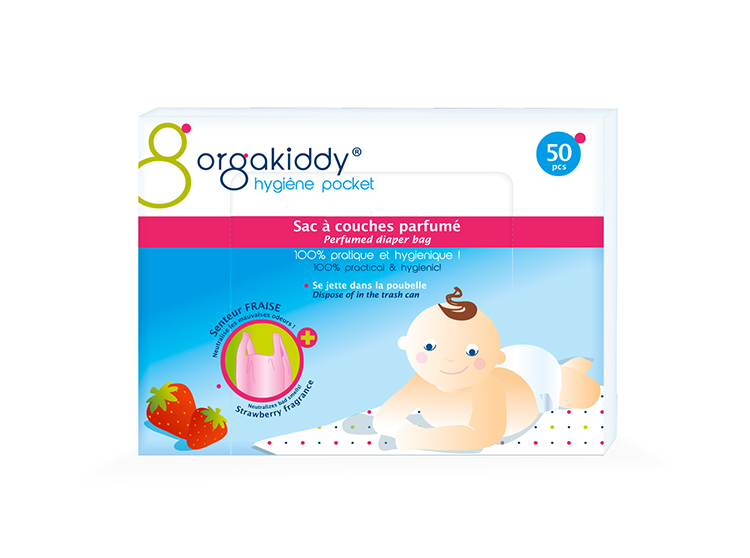 Les sacs à couches parfumés Orgakiddy neutralisent les mauvaises odeurs des couches usagées de bébé.