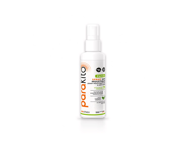 Le spray famille anti-moustiques Parakito est adapté aux peaux sensibles et à toute la famille. Dès 12 mois, il vous offre 7 heures d'efficacité contre les moustiques tigres et Culex ainsi que les tiques. Craquez pour sa texture lactée enrichie en amande douce et karité.