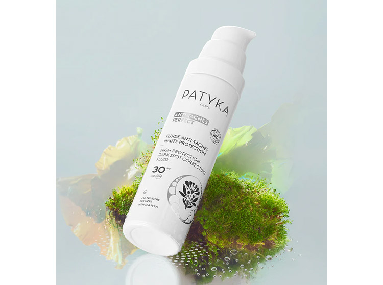 Fluide anti-taches haute protection SPF30 BIO Patyka Anti-taches Perfect, soin anti-tâches BIO Patyka, crème de jour BIO Patyka, soin de jour anti-taches BIO Patyka, protection solaire anti-taches Patyka BIO, soin hydratant éclaircissant BIO Patyka Anti-taches Perfect.