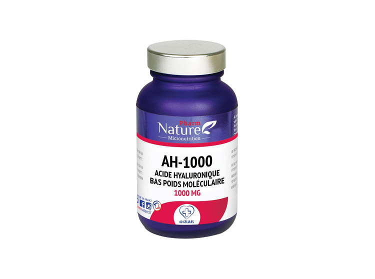 Pharm Nature Micronutrition AH-1000 est un complément alimentaire à base d'acide hyaluronique de bas poids moléculaire et de zinc. Ce complément alimentaire pour la peau est particulièrement adapté aux personnes voulant limiter le vieillissement cutané (stress oxydatif), aux séniors et aux sportifs, ainsi qu'aux personnes ayant la peau sèche.