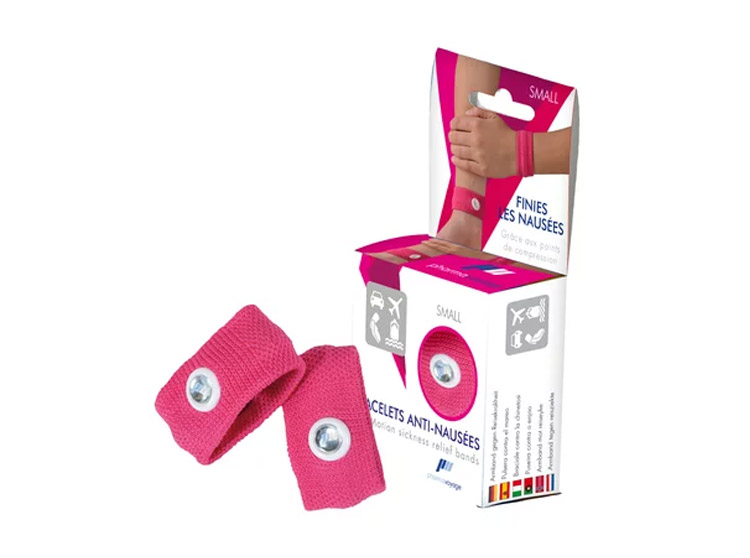 Conçu pour les poignets enfants ou les petits poignets adultes, les bracelets anti-nausées Pharmavoyage préviennent et soulagent les effets nauséeux liés au mal des transports (voiture, car, avion, bateau...) et aux nausées médicamenteuses. Il apporte une efficacité quasi immédiate basée sur le principe des points d'acupuncture, grâce à une pastille en plastique intégrée qui vient agit sur le point d'acupuncture Nei Kuan.