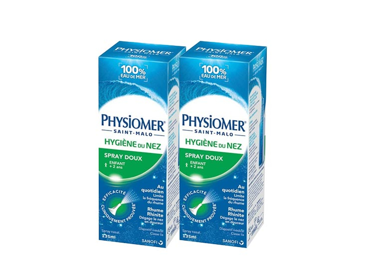 Physiomer Hygiène du nez nettoie, hydrate et désencombre le nez des enfants dès 2 ans. L'embout spray de physiomer est adapté à la forme des fosse nasale et facilite son utilisation quotidienne. Physiomer soulage les symptômes du rhume et traite le nez bouché et le nez qui coule. Formulé à base d'eau de mer isotonique, Physiomer nettoie naturellement et en douceur le nez des enfants, pour les protéger efficacement contre les virus de l'hiver.
