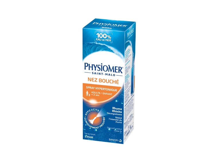 Physiomer Hypertonique nez bouché décongestionne le nez et réduit l'intensité du rhume ou de la rhinite. Cette solution 100% eau de mer convient au nettoyage du nez des adultes et des enfants de plus de 2 ans, Physiomer nez bouché est indiqué pour libérer éfficacement les fosses nasales encombrées afin de veritablement les décongestionner.