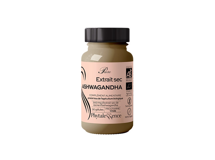 Phytalessence Pure Extrait sec d'Ashwagandha BIO est un complément alimentaire formulé à base d'ashwagandha BIO. L'ashwagandha est une plante riche en flavonoïdes et acides gras qui aident à réduire les effets du stress oxydatif et à améliorer les performances physiques et intellectuelles. L'ashwagandha aide également à réduire le stress et l'anxiété et à lutter contre les troubles du sommeil et la fatigue.
