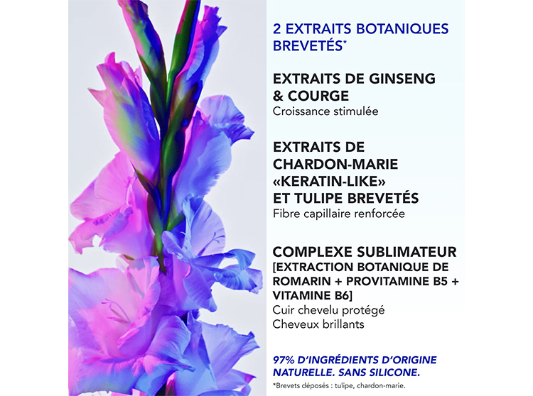 Grâce à une formule botanique brevetée, riche en actifs d’origine naturelle, ce sérum favorise un environnement optimal pour la croissance des cheveux. Les extraits de ginseng et de courge soutiennent la pousse capillaire, tandis que le chardon-marie et la tulipe brevetée participent au renforcement de la fibre, pour des cheveux visiblement plus forts et plus résistants dès la racine.