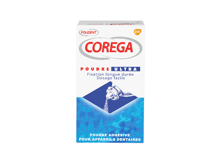 La poudre Adhésive Ultra Polident Corega pour prothèses dentaires est une poudre à la texture fine assurant une adhésion immédiate, durable et puissante pour votre prothèse dentaire.