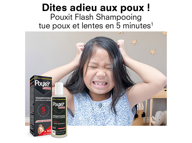Pouxit Flash Shampooing peut être appliqué sur le cuir chevelu des enfants de plus de 3 ans ainsi que chez les adultes. Il peut être utilisé pendant la grossesse et l’allaitement. Veillez toutefois à demander l’avis de votre médecin ou de votre pharmacien avant utilisation.