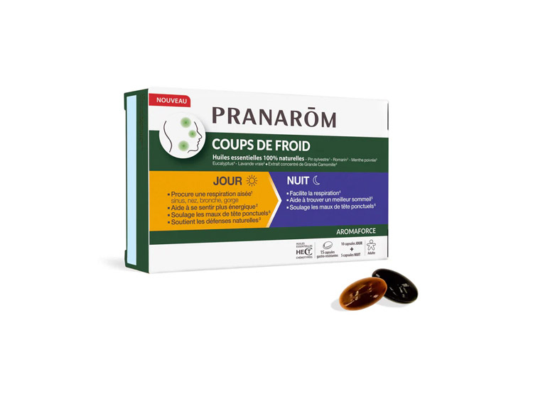 Coups de froid JOUR & NUIT est une solution naturelle qui associe les bienfaits des Huiles Essentielles et de la phytothérapie pour accompagner les périodes de fragilité saisonnière.