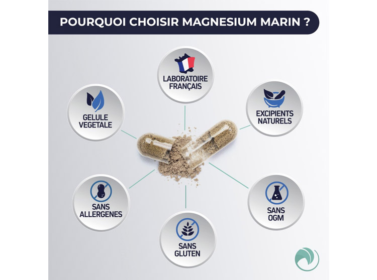 Magnesium marin est un complément alimentaire qui permet à réduire la fatigue, maintenir le métabolisme, le système nerveux et l’ossature grâce aux différents composants.