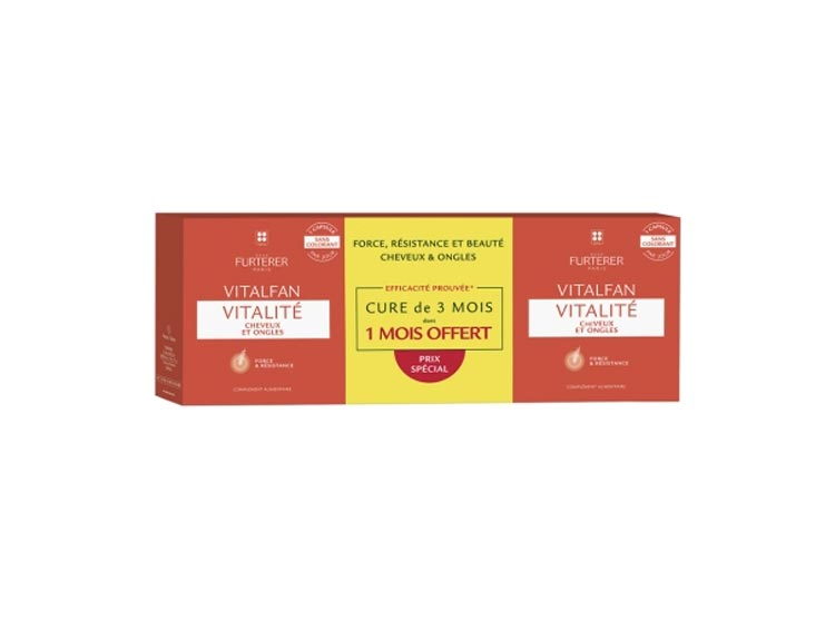 Vitalfan Vitalité de René Furterer est un complément alimentaire qui permet d'apporter force, résistance et beauté aux cheveux et ongles souvent fragilisés dans le quotidien.