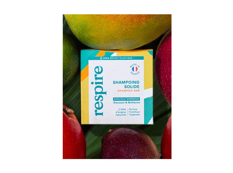 Le shampoing solide Respire Fraîcheur Tropicale est à 94% d’origine naturelle, vegan, fait en France et éco-responsable. Adapté aux cheveux normaux, il apporte douceur et brillance, laissant un parfum aux notes fruitées et acidulées. Sa formule est enrichie en huile d’amande douce bio, huile de cameline bio et huile d’avoine reconnues pour leurs propriétés nutritives et adoucissantes.
