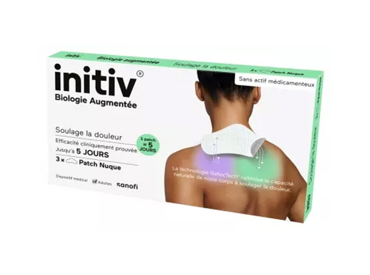 Les Patchs Nuque Initiv de chez Sanofi bénéficient d'une technologie permettant d'optimiser la capacité naturelle du corps à soulager les douleurs musculosquelettiques aigües (de courte durée) au niveau de la nuque.