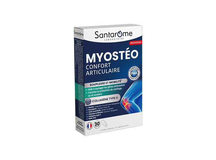 Ingrédients : agent de charge : cellulose microcristalline, Méthylsulfonate de Méthane (MSM), hydrolysat de collagène de poisson, poudre de Curcuma (Curcuma longa L.), poudre de Gingembre (Zingiber officinale Roscoe) anti-agglomérant : phosphates de calcium, vitamine C (acide L-ascorbique), Palmitoyléthanolamide (PEA), antiagglomérant : carbonate de magnésium, gluconate de manganèse, extrait sec d’Ortie (Urtica dioica L.), macérats glycérinés [eau, glycérine, alcool, bourgeon de Bouleau pubescent (Betula pubescens Ehrh.), bourgeon de feuille de Cassis (Ribes nigrum L.), bourgeon de Pin sylvestre (Pinus sylvestris L.)], extrait sec d’Harpagophytum (Harpagophytum procumbens et Harpagophytum zeyheri Decne), huile essentielle de Romarin (Rosmarinus officinalis L.), anti-agglomérant : sels de magnésium d’acides gras.