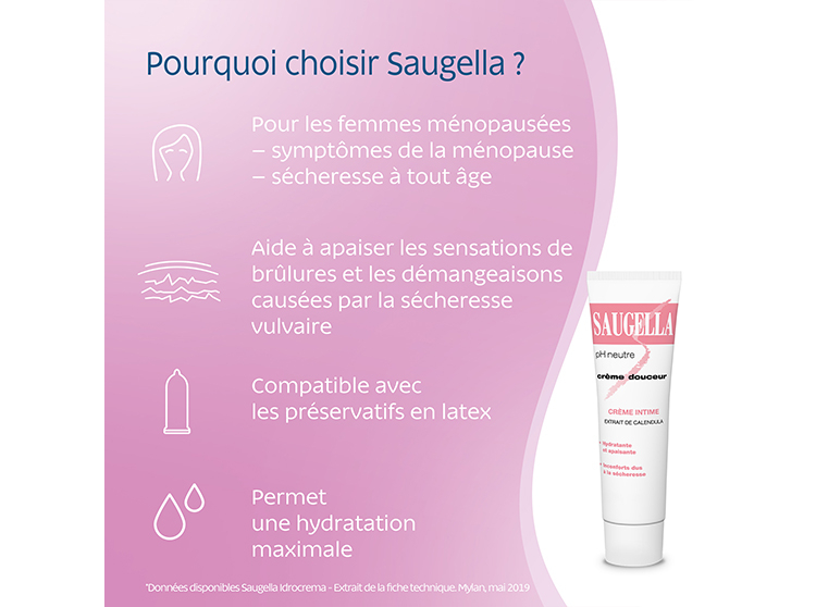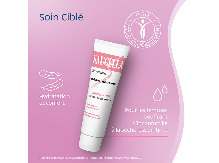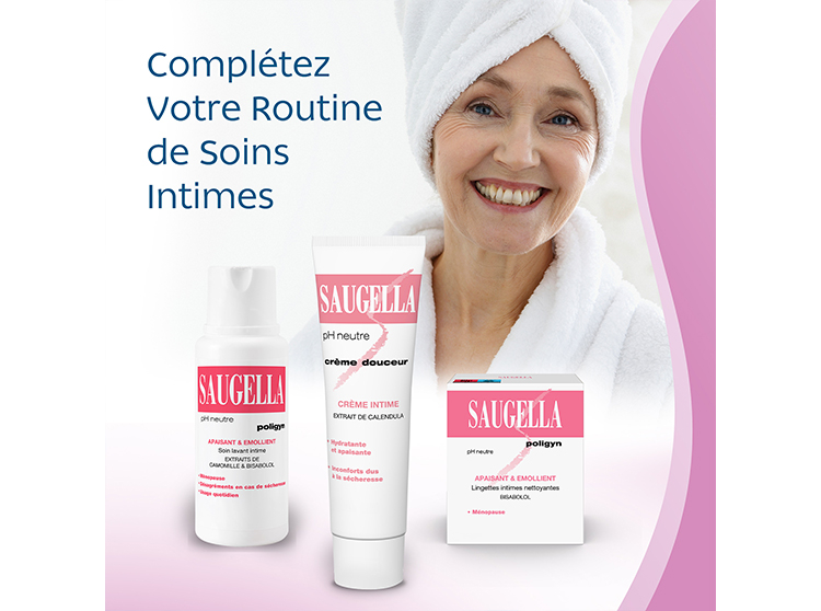 La ménopause entraîne de nombreux changements, et l'un des défis auxquels les femmes ménopausées sont fréquemment confrontées est l'inconfort intime, en particulier la sécheresse vulvaire entraînant des démangeaisons et des sensations de brûlure. C'est une phase naturelle, mais elle nécessite une solution pour résoudre ce désagrément intime. Les femmes de tout âge aussi peuvent faire face à des désagréments tels que des irritations intimes qu’il ne faut pas négliger non plus. Découvrez la Crème Douceur Saugella :