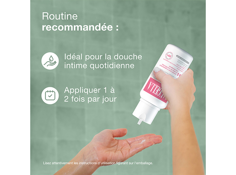 Utiliser une à deux fois par jour dans le cadre de votre routine d’hygiène intime. Appliquer une petite quantité de produit sur la zone intime externe, faire mousser délicatement puis rincer abondamment à l’eau
