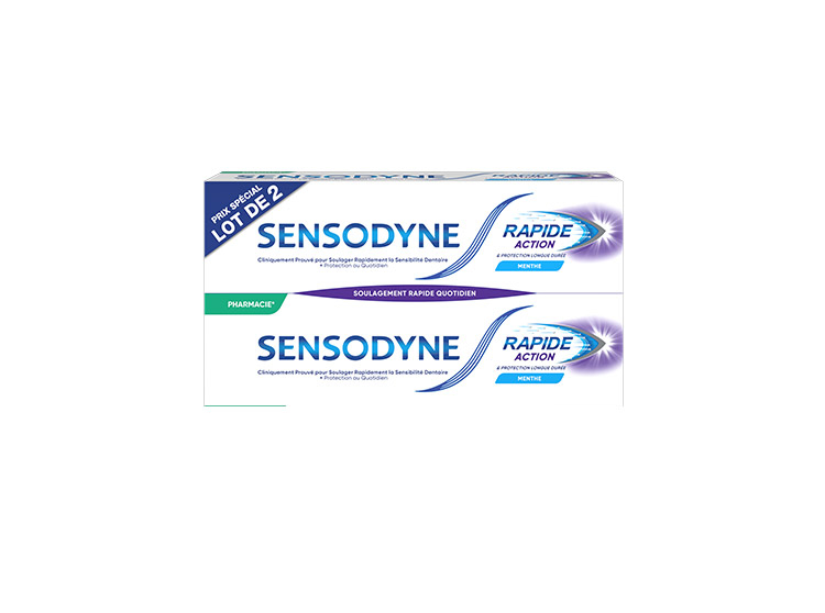 Sensodyne Rapide Action, c'est la façon la plus rapide de soulager la sensibilité dentaire et de l'empêcher de réapparaître. En brossage quotidien 2 fois par jour, Sensodyne Rapide Action agit en formant une barrière protectrice continue contre la douleur liée aux dents sensibles. Il restaure également la blancheur des dents et prévient l'apparition des taches.