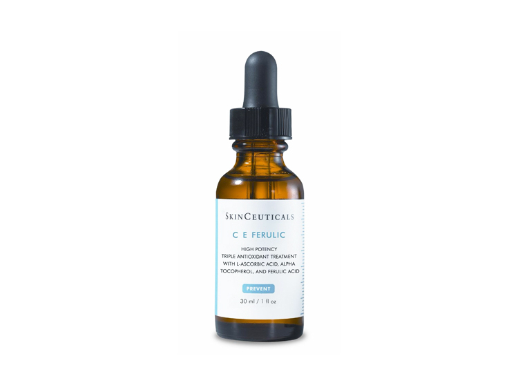 Le sérum anti-âge de Skinceuticals prévient et corrige les différents signes du photovieillissement grâce à une combinaison révolutionnaire d'antioxydants haute puissance, de vitamine C pure (15 % d'acide L-ascorbique), de vitamine E pure (1 % d'alpha tocophérol) et d'acide férulique extrait du blé (0,5 % d'acide férulique). Le Sérum C E FERULIC permet de lutter contre les signes visibles de l'âge. Après utilisation, la peau paraît plus jeune et se défend mieux contre le vieillissement dû aux facteurs environnementaux. Une fois absorbé, ce sérum ne disparaît pas au lavage et résiste aux frottements. Il reste actif pour un minimum de 72 heures, et peut ainsi être combiné à un écran solaire. Résultats : Procure une haute protection environnementale, lisse les rides et ridules (rides d'expression, rides du lion), la peau est éclatante, l'ovale est resculpté, la peau est plus ferme. Le soin C E FÉRULIC est idéal après un peeling professionnel mais également en pré et post intervention au laser. Il est également conseillé de l'appliquer avant des injections d'acide hyaluronique ou de toxine botulique.