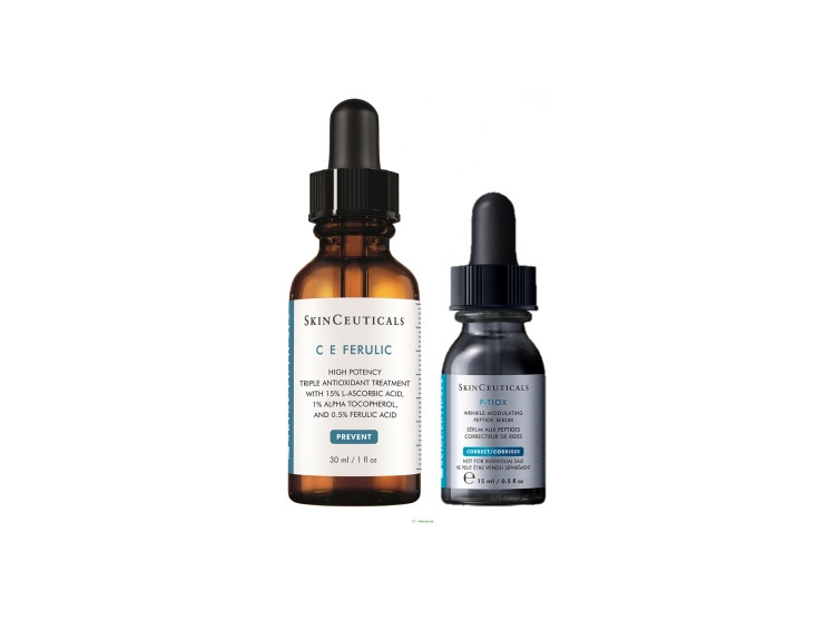 - Prevent C E Ferulic - 30ml : C'est un sérum triple antioxydant haute puissance avec 15% d'acide L-Ascorbique, 1% d'alpha-tocophérol, et 0.5% d'acide férulique. Combinaison unique d'antioxydants tels que les vitamines C et E et l'acide férulique, ce sérum apporte une efficacité antioxydante optimale pour donner à la peau un aspect plus jeune, plus ferme, et plus lisse. Il protège aussi la peau des agressions environnementales pour prévenir l'apparition des signes de vieillissement prématuré, atténuant aussi l'apparence des rides, ridules et taches brunes, tout en stimulant la production de collagène. Rapidement absorbé, le sérum est actif pendant 72H. Sans parfum.