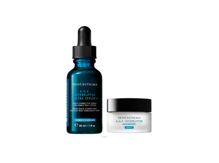 Le Coffret A.G.E Interrupter Rides et Lift de Skinceuticals apporte une routine intégrale pour lifter et redonner fermeté à la peau. Il est idéal pour prévenir, corriger et protéger contre les signes visibles de l'âge.