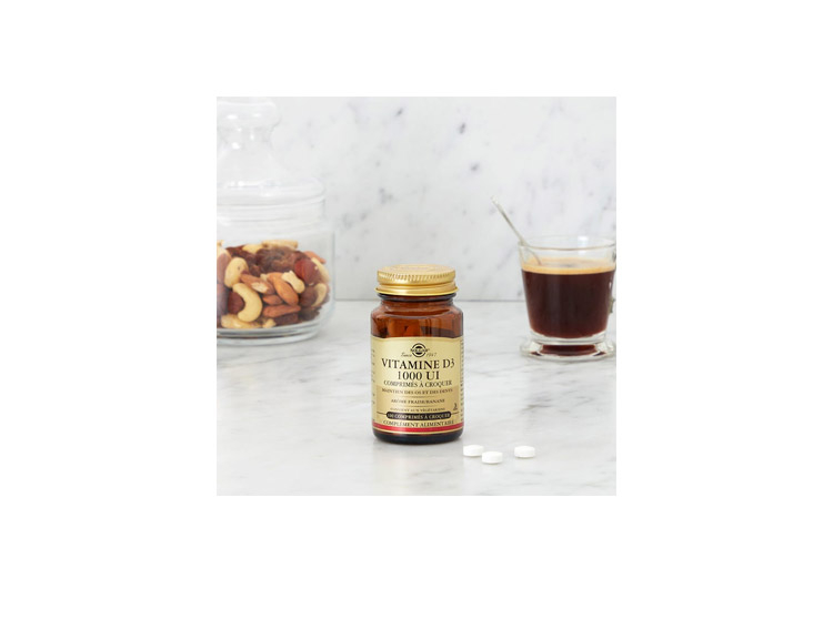 Croquer 1 comprimé Solgar Vitamine D3 1000UI par jour.
