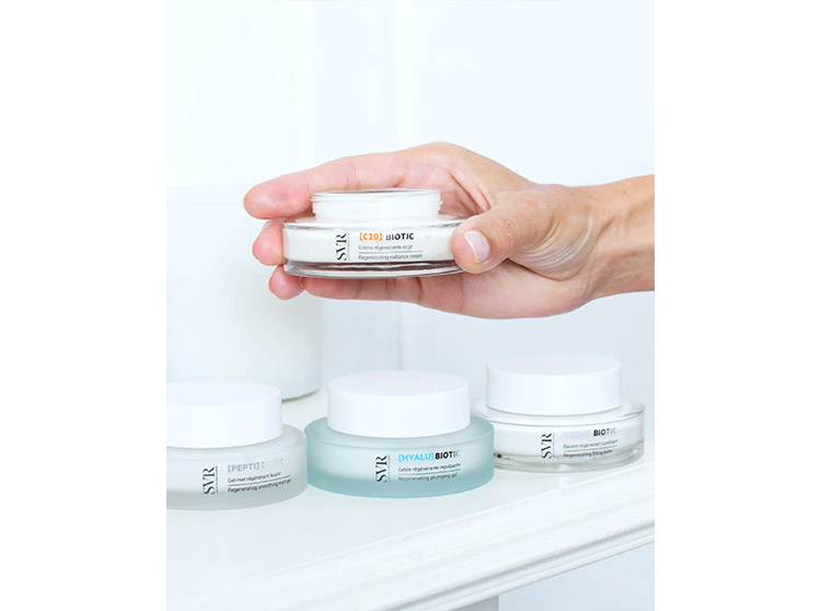 Si le microbiote cutané est déséquilibré, le vieillissement de notre peau est accéléré. Il faut donc le protéger. SVR apporte des PROBIOTIQUES PASTEURISES pour renforcer la barrière cutanée. Si nous avons choisi ces souches, c’est parce que le processus de pasteurisation qu’elles ont connu leur permet de conserver leurs propriétés probiotiques : renforcer et protéger la barrière cutanée tout en l’hydratant. La peau est alors prête à faire face aux agressions quotidiennes.